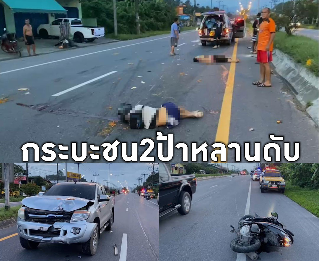 สลด!จยย.ป้าหลานเปลี่ยนเลนกะทันหัน กระบะเบรคไม่ทันพุ่งชนเสียชีวิตทั้งคู่