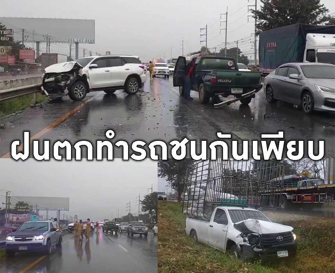ปากช่องฝนตกหนักถนนลื่นเกิดอุบัติเหตุ มีหลายจุดพบรถชนกัน5คันรวด