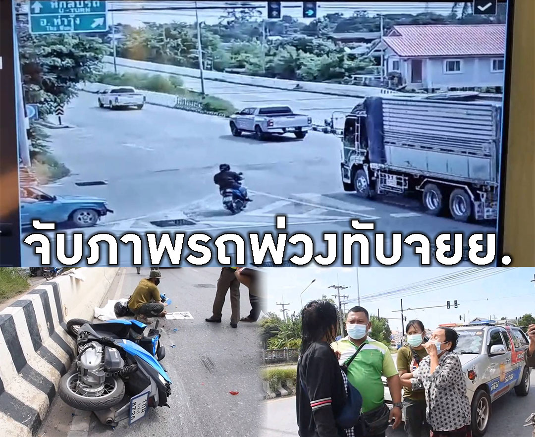 วงจรปิดจับภาพรถพ่วงเหยียบหนุ่มลูกครึ่ง จยย.ถูกเบียดจนล้มแล้วทับดับสยอง