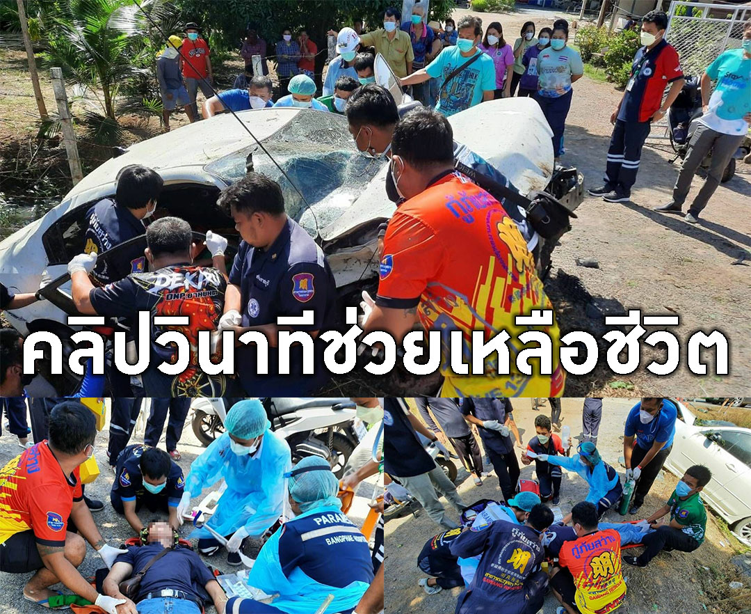 คลิป!เหตุการณ์กู้ภัยช่วยเหลือผู้บาดเจ็บ ติดอยู่ภายในรถที่เกิดอุบัติเหตุราชบุรี