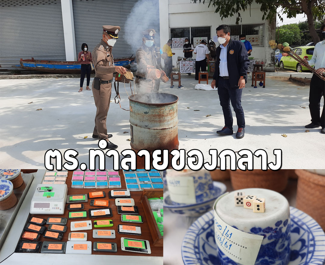 สมุทรปราการ-ตำรวจพระสมุทรเจดีย์นำของกลางมาทำลายกว่า 450 รายการ หลังศาลพิพากษาคดีถึงที่สุด