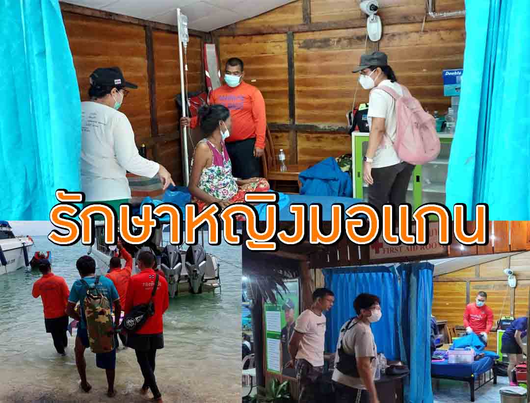 พังงา - นายแพทย์สาธารณสุขจังหวัด ให้การรักษาเบื้องต้นแก่หญิงมีครรภ์ชาวมอแกนที่มีภาวะรกเกาะต่ำ ของอ่าวบอน เกาะสุรินทร์