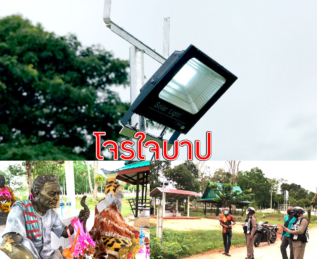 โจรใจบาปขโมยแผงชาร์จไฟโซล่าเซลล์ศาลทวดท้าวเทพทอง