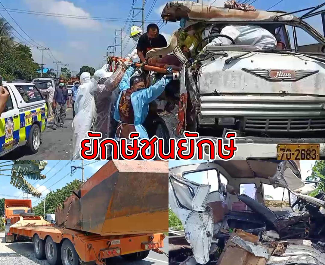 บรรทุกพ่วงเรือโป๊ะเสียหลักเรือไหลพุ่งชนรถบรรทุกเจ็บ
