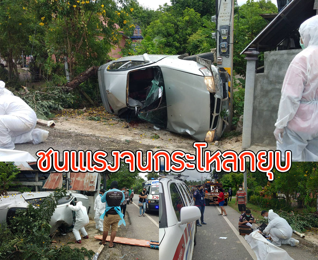 สุดสลด!หนุ่มขับเก๋งเตรียมซื้อของรดน้ำศพแม่เสียหลักฟาดต้นไม้ข้างทางคาที่