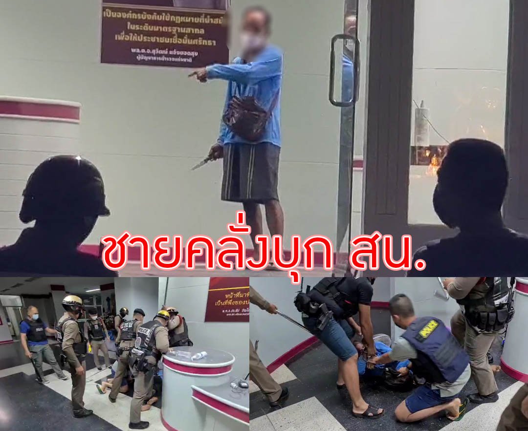 คลิปนาทีชายคลั่งบุกเดี่ยวถือมีดปลายแหลมไล่แทงตำรวจบนโรงพัก