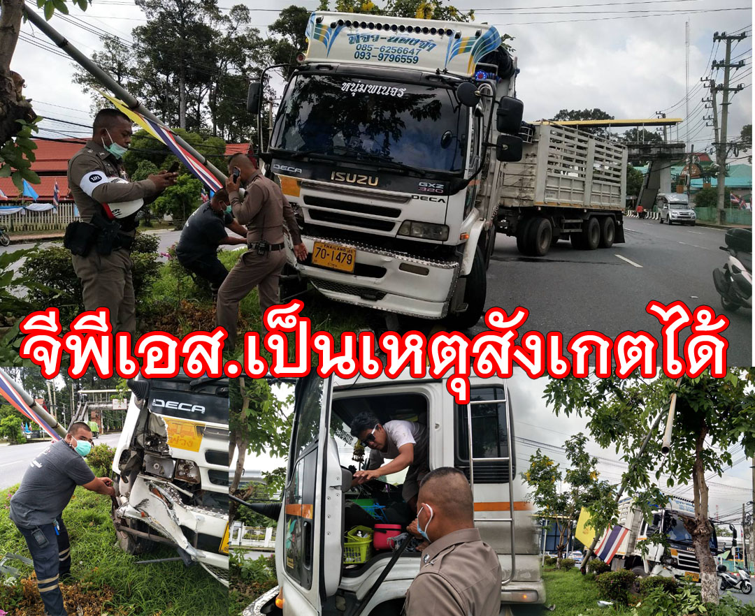 'หนุ่มรถพ่วง'ตั้งจีพีเอส.ขับเข้านครนายก ดูเพลินรถพุ่งชนเสาไฟหักแค่บาดเจ็บ