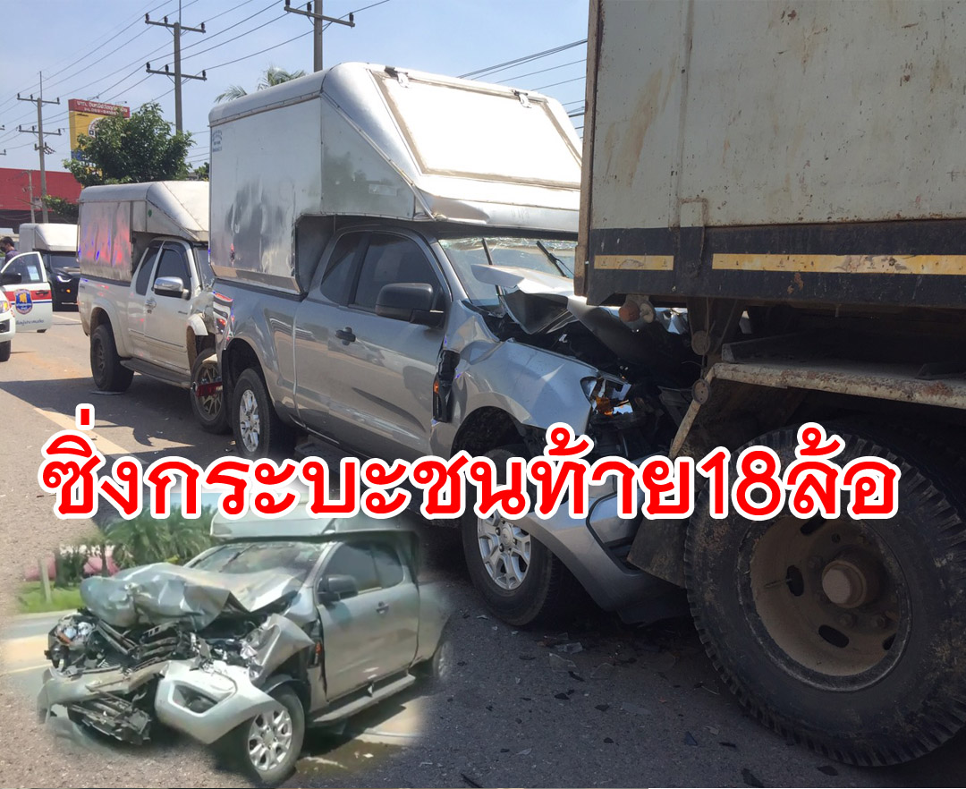ผู้หายโควิดซิ่งกระบะพาเมียกลับกรุงเทพฯ ชนท้ายพ่วง18ล้อรถยับเยินสาหัส2