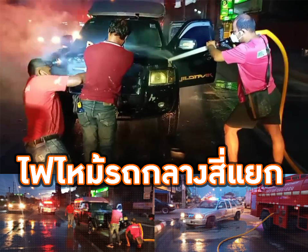 นครปฐม-ระทึกกลางสี่แยกไฟแดง ไฟไหม้ห้องเครื่อง ขณะขับรถไปทำงานที่ต่างจังหวัด