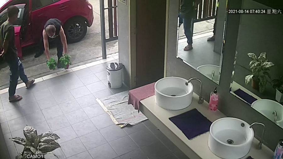 นครปฐม-หนุ่มใหญ่ ขับเก๋งสีแดงยกกระถางปลอมหน้าห้องน้ำร้านก๋วยเตี๋ยวลูกชิ้นปลานายเงี๊ยบ พุทธมณฑลสาย 4 ย่องเอากระถางมาคืนทั...