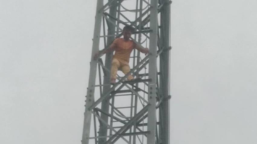 ปราจีนบุรี-หนุ่มเครียดรถถูกขโมยคดีไม่คืบปีนเสาส่งสัญญาณโทรศัพท์หวังฆ่าตัวตาย ที่หน้าหมู่บ้านกองเงิน หมู่ 3 ตำบลกรอกสมบูร...