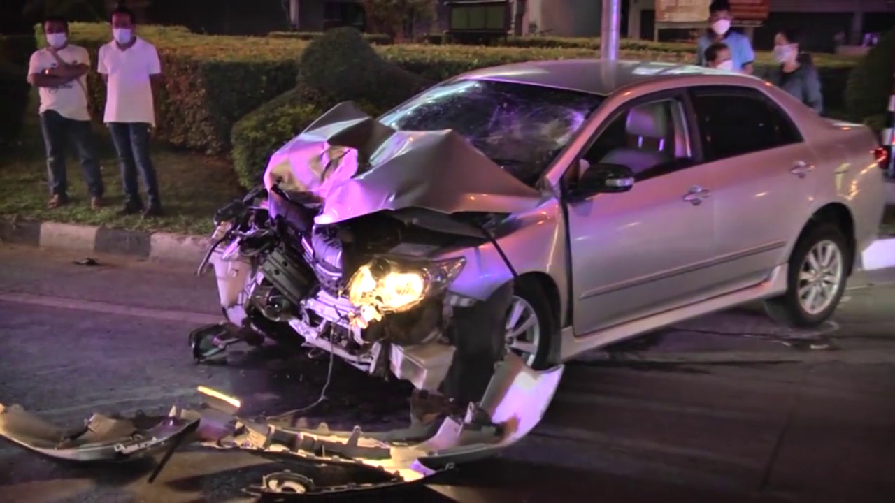 หนุ่มจยย.ซวยถูกเก๋งซิ่งฝาไฟแดงชนตู๊ม! กระเด็นอัดปิคอัพอีกสาหัส