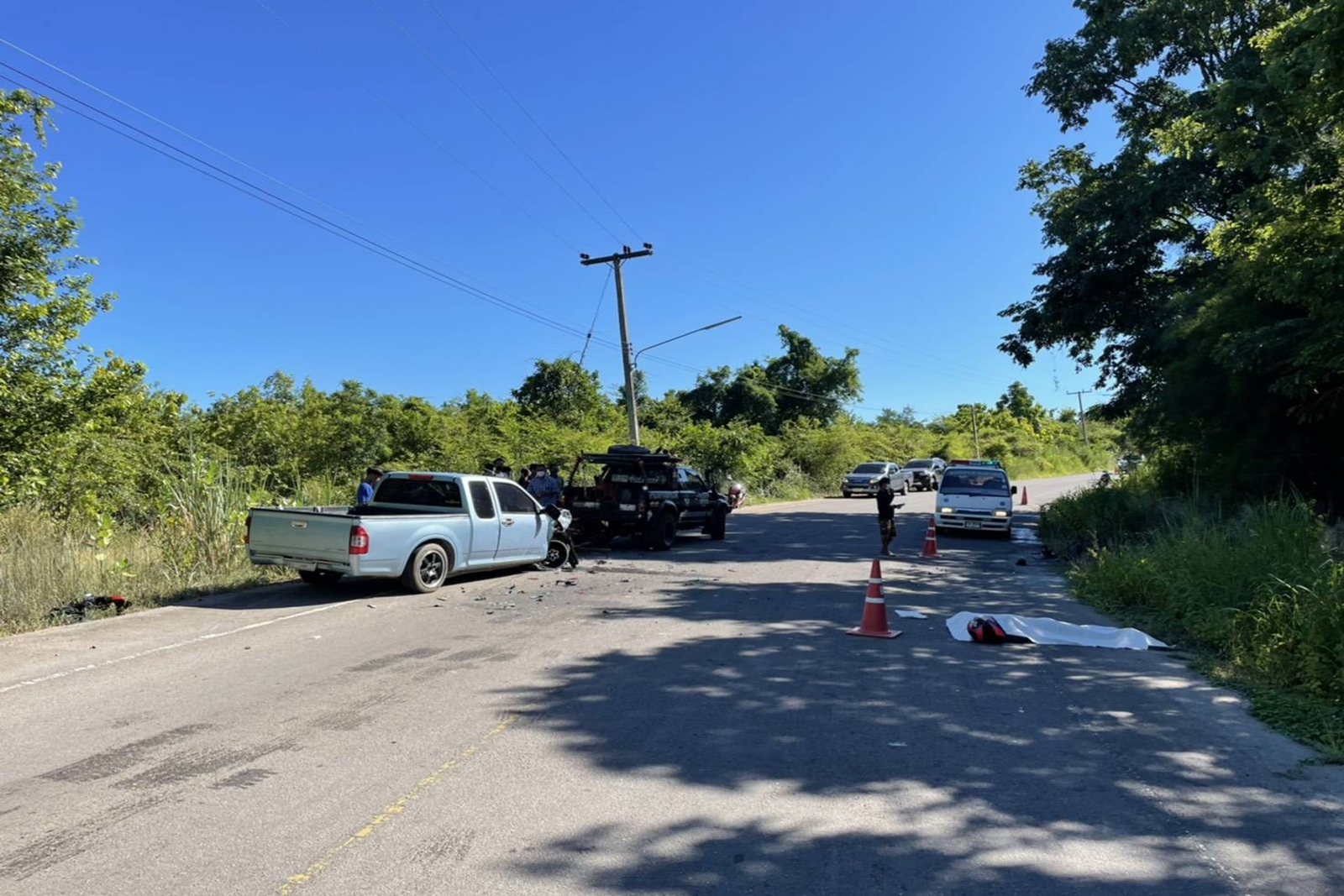 ราชบุรี - นักท่องเที่ยวซิ่งจยย.แหกโค้งชนกระบะดับสยอง เหตุเกิดถนนสายโป่งยุบ-วังน้ำเขียว หมู่ที่ 10 ต.ท่าเคย อ.สวนผึ้...