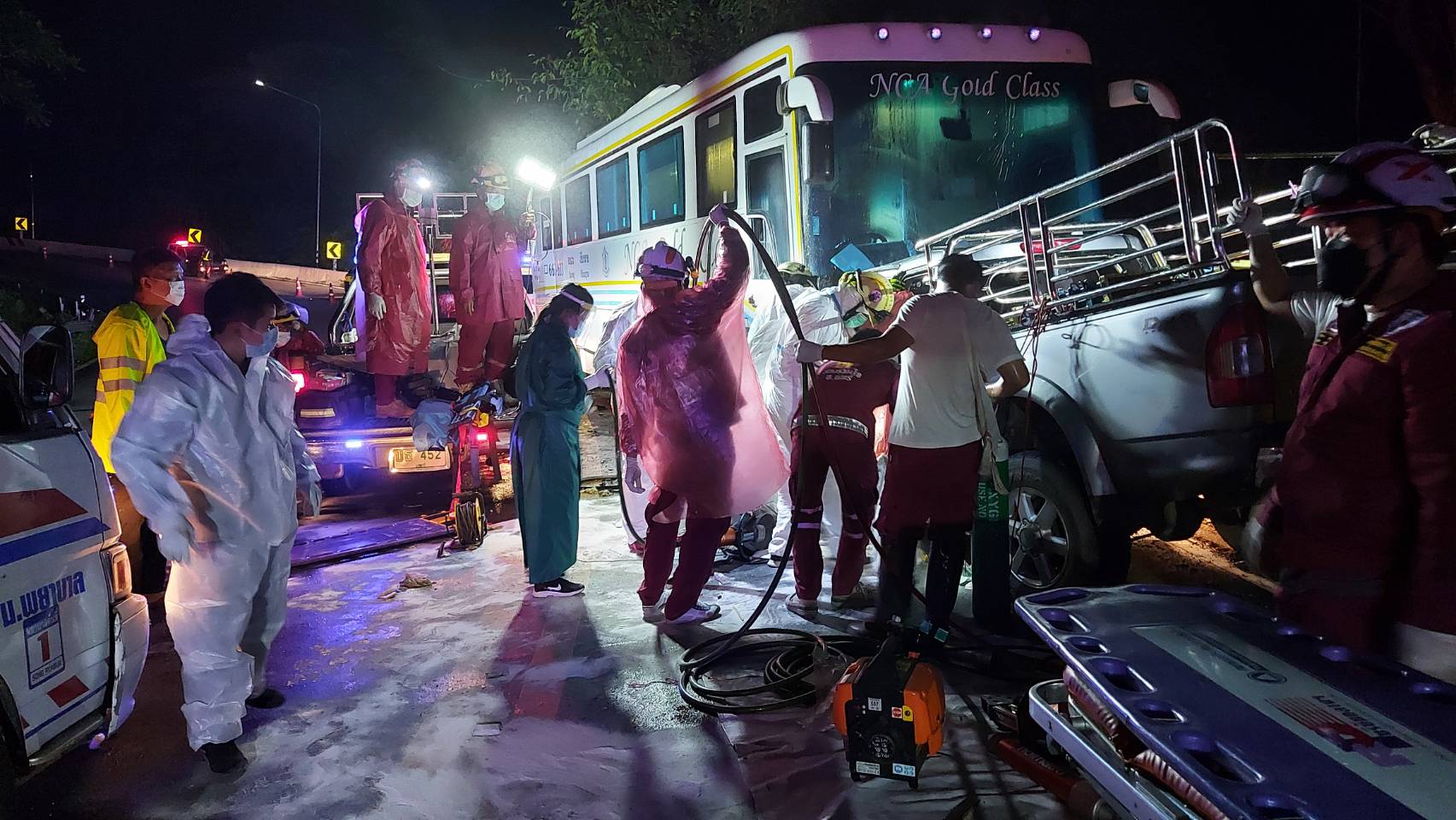 แพร่-ฝนตกถนนลื่น ทัวร์นครชัยแอร์รับผู้โดยสารจากเชียงรายไประยองชนประสานงากับรถกระบะแหกโค้งช่วงลงเขาคนขับกระบะเสียชีวิตทัน...