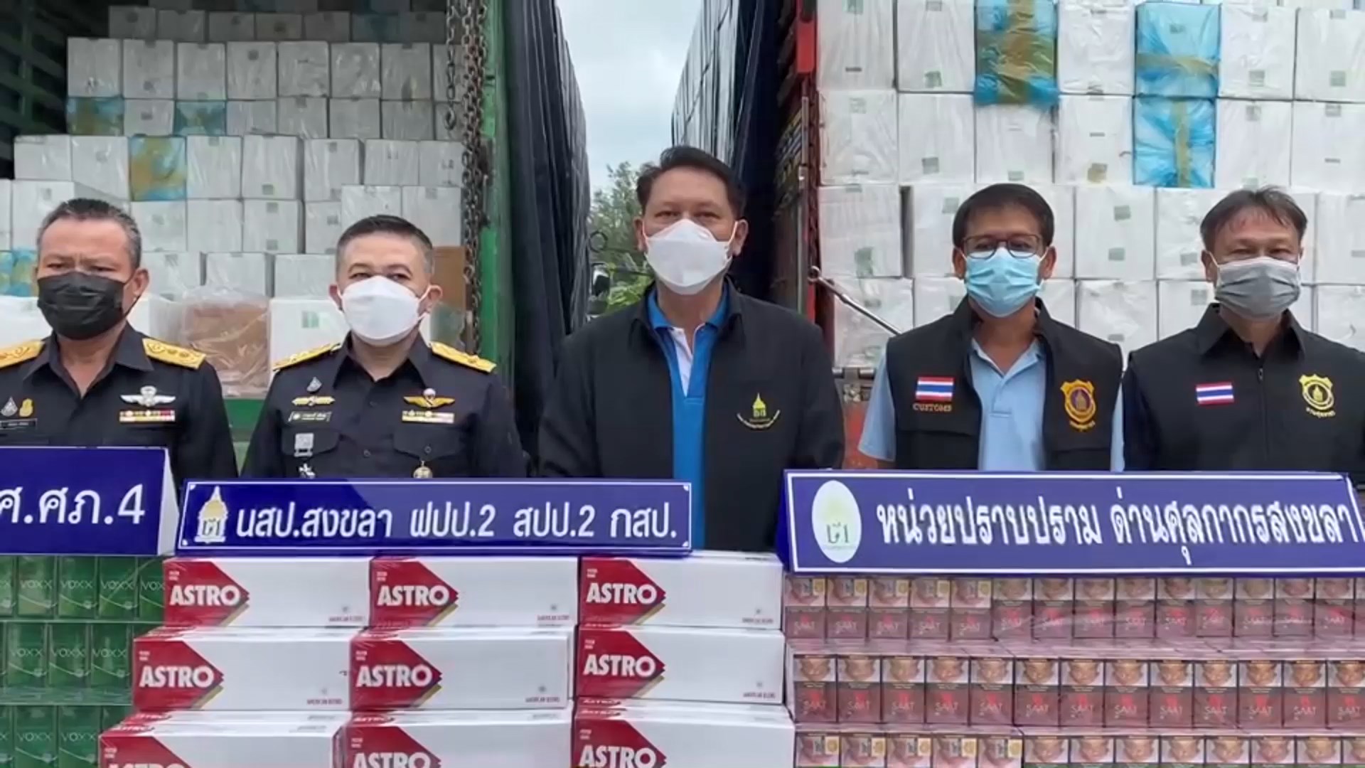 สงขลา-เจ้าหน้าที่ศุลกากรภาคที่ 4 จับกุมบุหรี่เถื่อนที่ลักลอบนำเข้ามาจากต่างประเทศ จำนวน 371,500 ซอง รวม 7,430,000 มวน &n...
