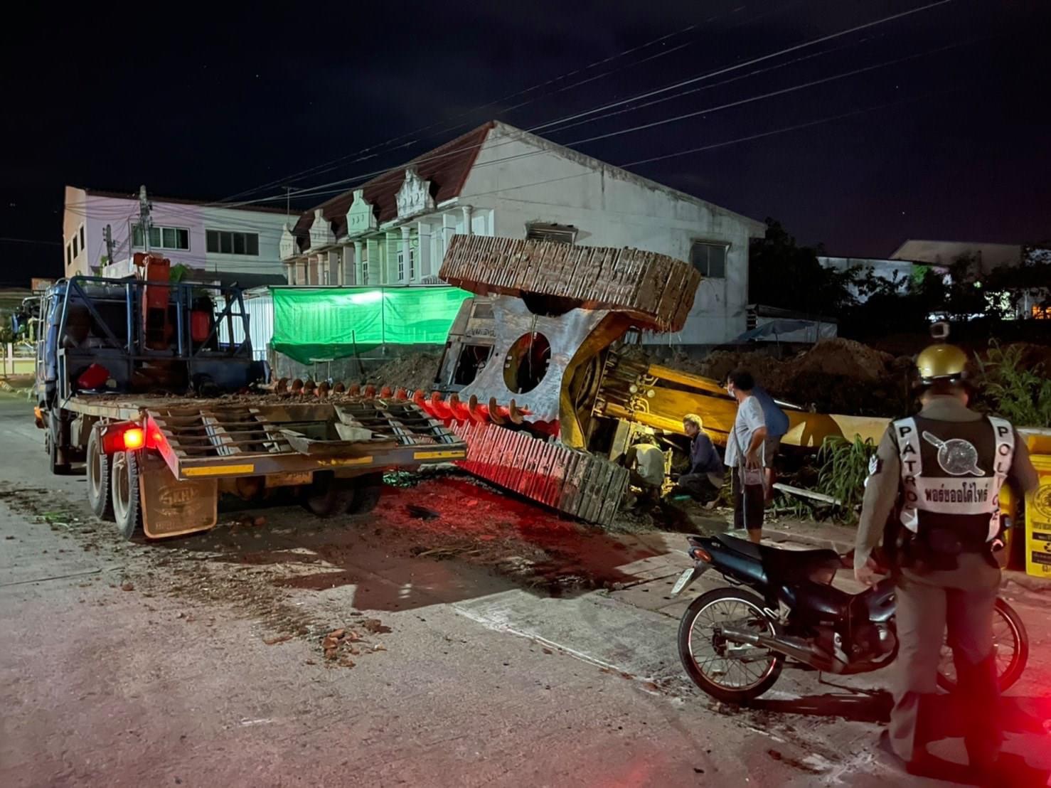 'แบคโฮ'ตกรถเทรลเลอร์ขวางถนนเจ็บ1