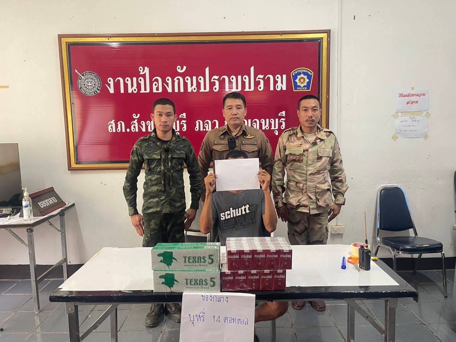 ตร.สังขะยึดบุหรี่เถื่อนซุกรถตู้ทึบบ.ขนส่ง จิ๊บๆมีแค่14คอทตอล