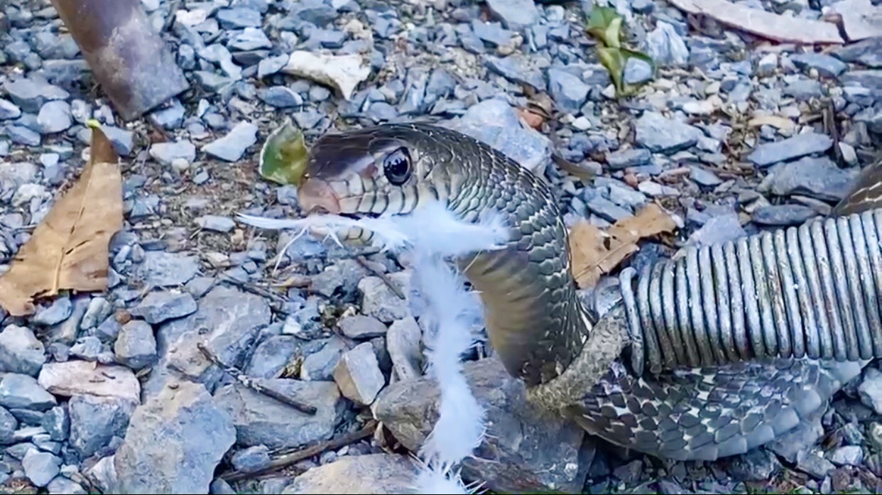 จับงูสิงดงหัวขโมยกินนกพิราบในกรง