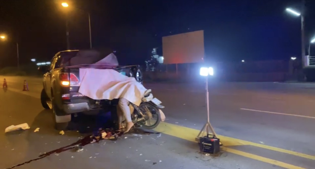 หนุ่ม15ซิ่งจยย.ชนท้ายรถกะบะดับคาที