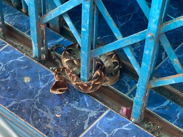 พังงา-ขนลุก !!! อสรพิษร้ายงูกะปะหางกระดิ่งนอนขดเฝ้าประตูเข้าบ้าน เลขที่ 261 ถ.จรูญธรรม ต.คูหาสวรรค์ อ.เมือง จ.พัทลุง