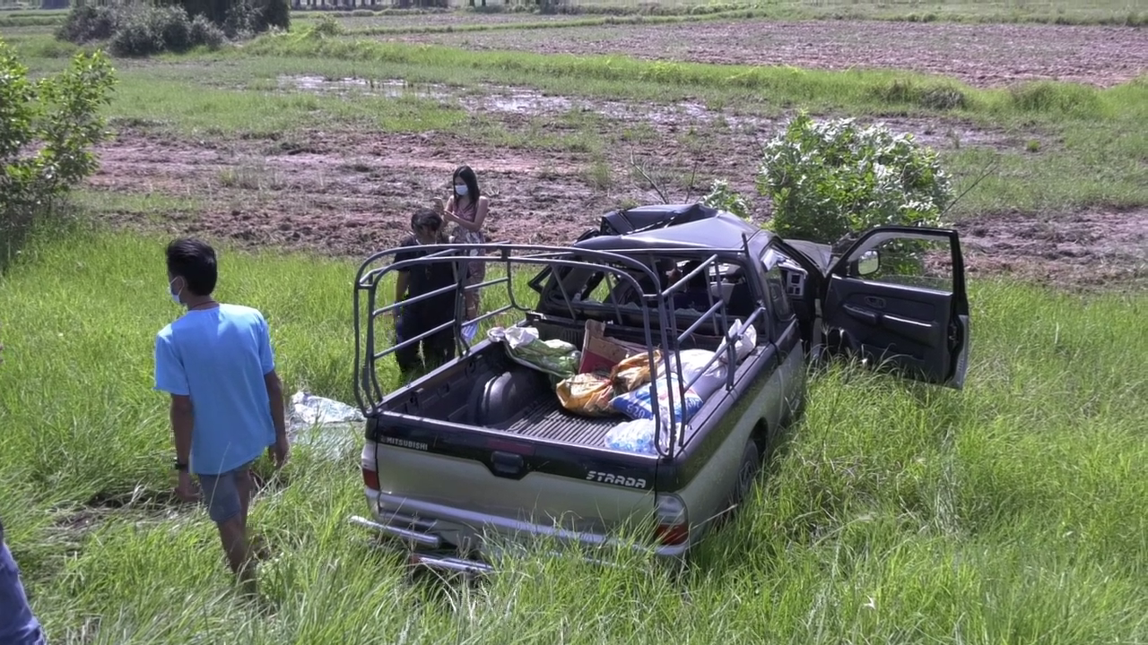 นครราชสีมา-ตาวัย 67 พาญาติไปงานศพกำลังกลับบ้าน ก่อนหลับใน เสียหลักลงข้างทาง ส่งผลให้ติดภายใน 3 ราย อาการสาหัส