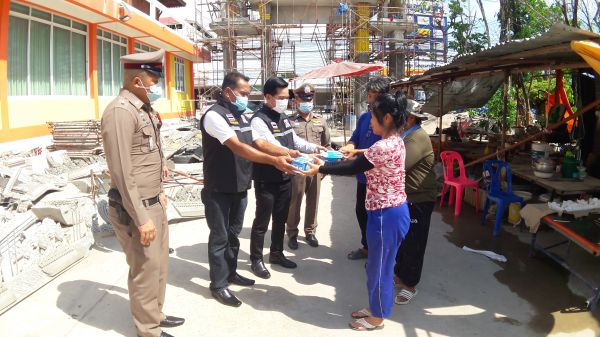 สมุทรปราการ-ตำรวจสาขลาห่วงใยประชาชนจูงมือ กต.ตร.ลงพื้นที่แจกหน้ากากอนามัยเพื่อป้องกันเชื้อโควิค-19