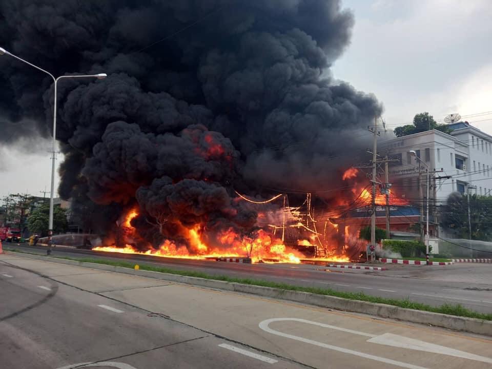 นครปฐม-ไฟไหม้โกดังและสำนักงานบริษัทตัวแทนจำหน่ายน้ำมันหล่อลื่นรายใหญ่ ริมถนนเพชรเกษม เจ้าหน้าที่เร่งระบายรถ คนหนีตายอลหม...