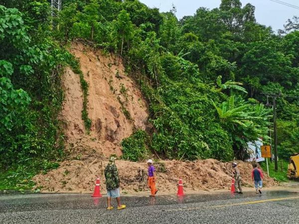 ภูเก็ตดินสไลด์ปิดทับถนนสายป่าตอง จังหวัดเตือนฝนตกหนักพร้อมช่วย24ชม.