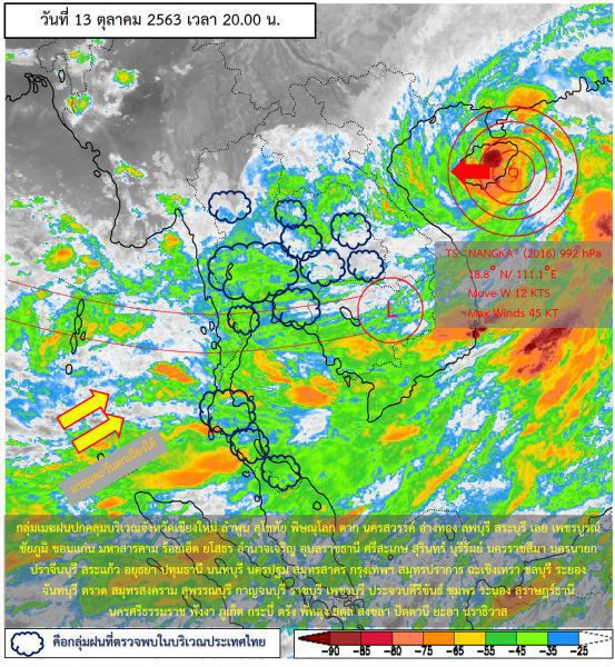 กรมอุตุฯประกาศเตือนพายุ "นังกา" บริเวณจีนใต้ตอนบนเข้าอาวตังเกี๊ยและประเทศเวียดนามในวันที่ 14-15 ตุลาคม 2563 โด...