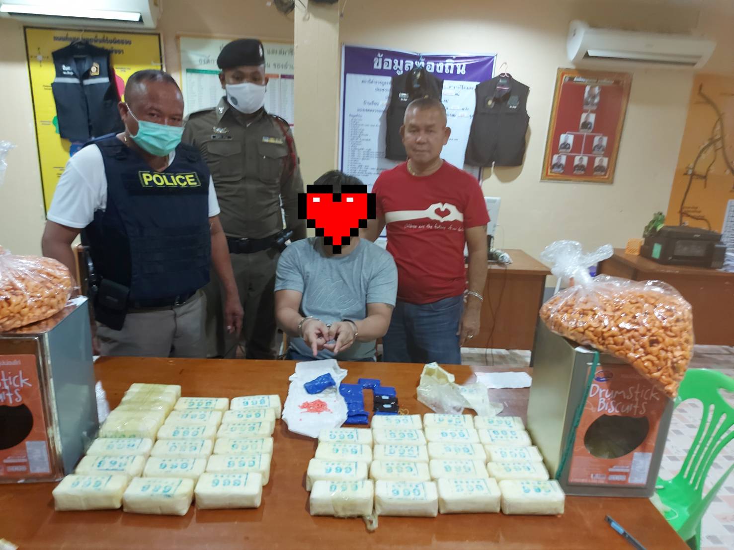 ปทส.จับหนุ่มพกปี๊บขนมซุกยาบ้าแสนเม็ด