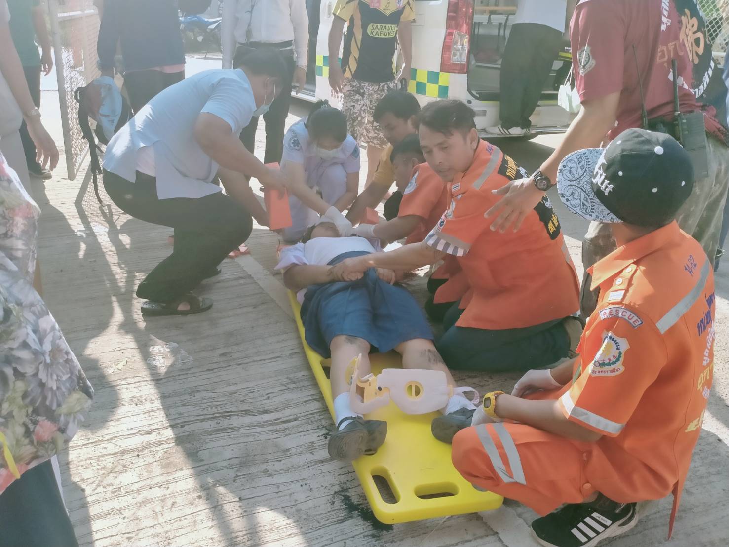 'อบต.ดอนยาวใหญ่'รุดเยี่ยมผอ.ศูนย์เด็ก รถมีอุบัติเหตุได้บาดเจ็บ