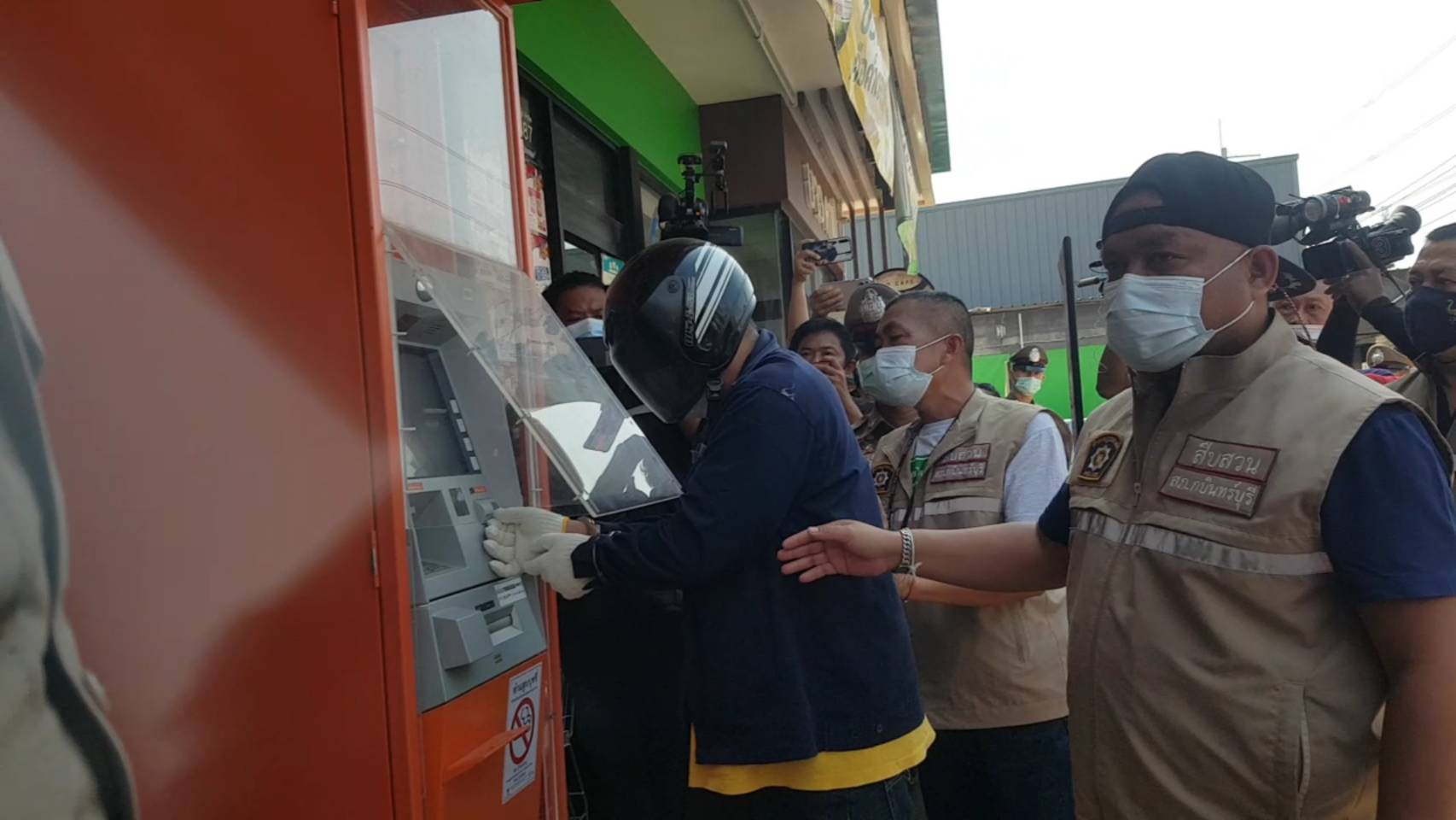 ปราจีนบุรี -ตำรวจกบินทร์บุรี จังหวัดปราจีนบุรี นำ 3 คนร้ายทำแผนใช้แก๊สตัด ตู้ATM.ธนาคารไทยพาณิชย์ ห...