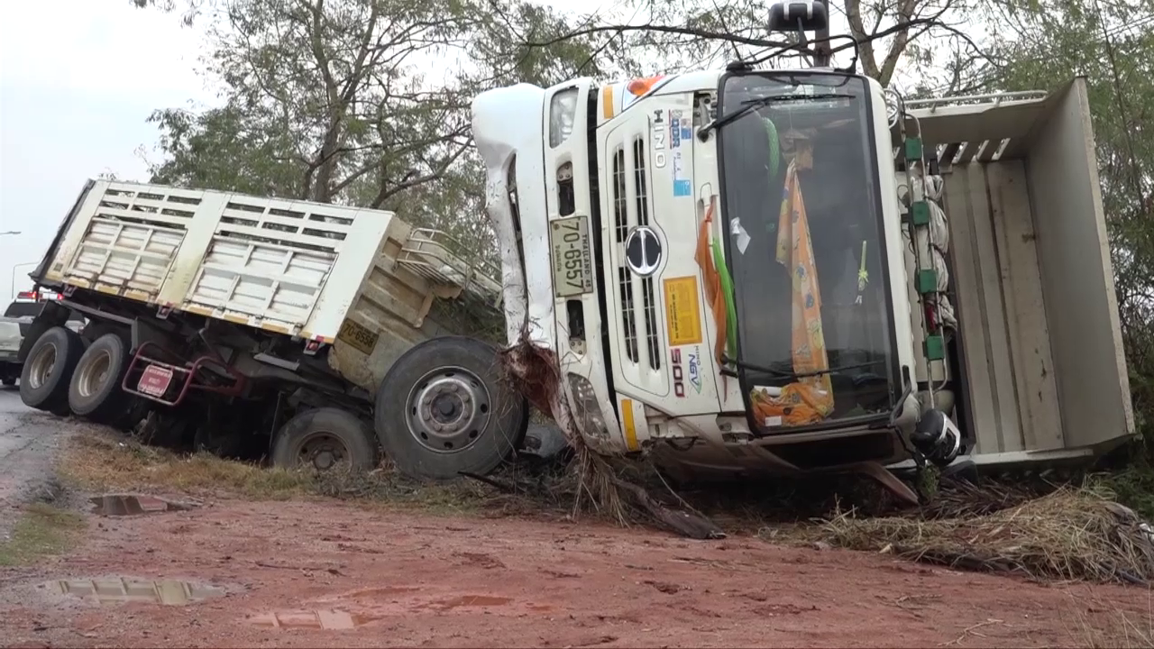 เชียงราย- สิบล้อซิ่ง กลับจากส่งสินค้าที่ใกล้ สะพานพรมแดนไทย-เมียนมา 2 อ.แม่สาย ขากลับ รถเสียหลักพุ่งกินเลนไปอีกฝั่...