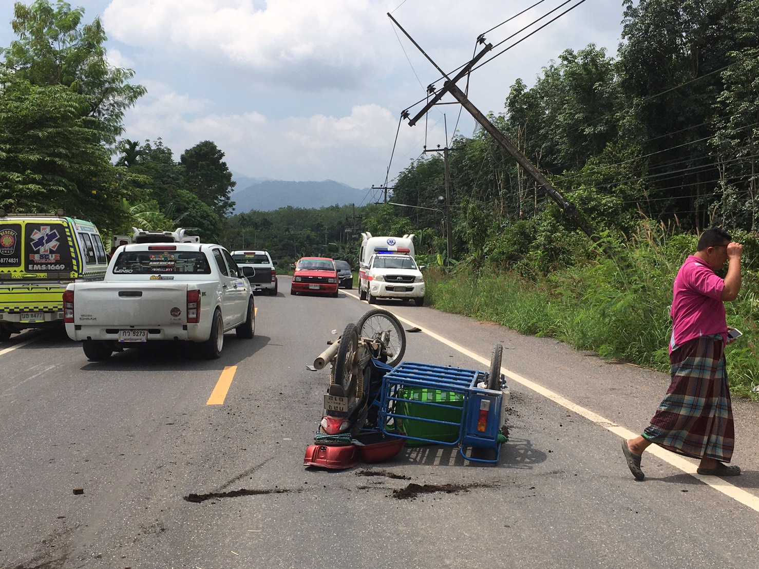 ละเลย!!ผู้เฒ่าขี่สามล้อสายไฟเกี่ยวคอ บาดเจ็บชาวบ้านสงสารพาส่งรพ.ตะโหมด
