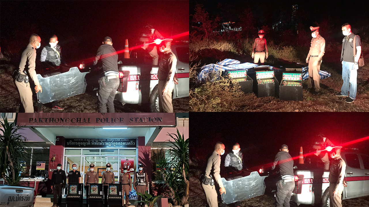 นครราชสีมา-ตำรวจปักธงชัยยึดตู้สล็อต 3 ตู้ ช่วงกลางดึกที่ผ่านมา ถูกนำมาทิ้งไว้บริเวณป่าละเมาะ