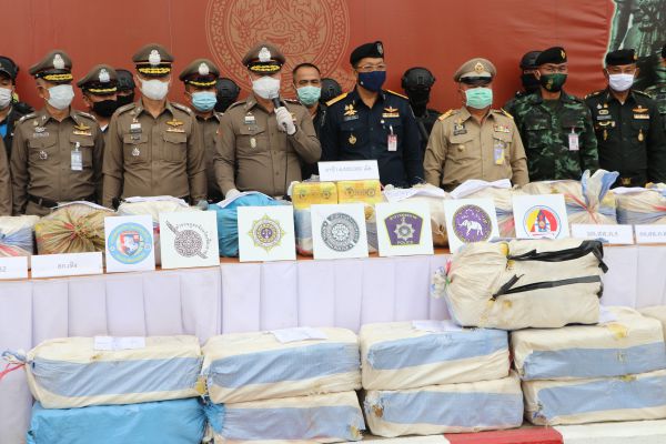 เชียงราย-ผบช.ภ.5 พร้อมด้วย รองผู้ว่าราชการจังหวัดเชียงราย แม่ทัพน้อยที่ 3 ในฐานะรอง ผบ.ศป.บส.ชน.,ปปส.,ตชด.นรข. ร่วมกันแถ...