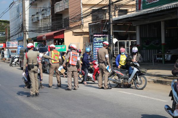 เชียงราย- รอง ผกก.ป.สภ.แม่สาย จ.เชียงราย นำกำลังตำรวจ 20 นายตั้งจุดตรวจกวดขันวินัยจราจรบริเวณริมถนนนพหลโยธินขาออกเมืองแม...