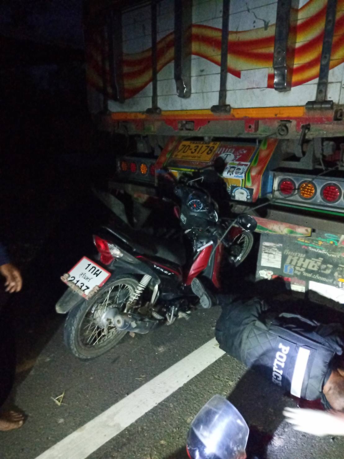 สุรินทร์-อุทาหรณ์!!จอดรถริมทางไม่แสดงสัญญาณไฟ จยย.ชนท้ายรถบรรทุก อส.ตร.เจ็บสาหัส รถจักรยานยนต์ชนท้ายรถบรรทุกพ่วงซึ่งจอดอ...
