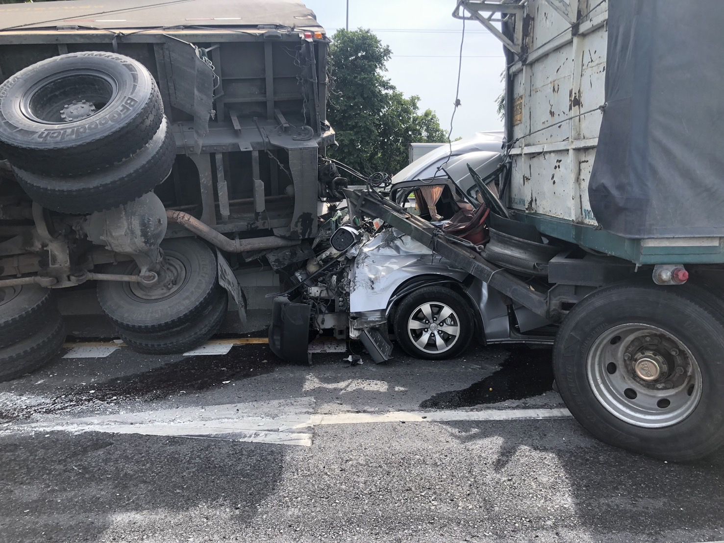 สิงห์บุรี-รถตู้นำคณะผู้สูงอายุไปทำบุญที่วัดปากคลองมะขามเฒ่า ถูกรถพ่วงแหนบรถหักเสียหลักเบียดรถตู้ยับบาดเจ็บหลายราย