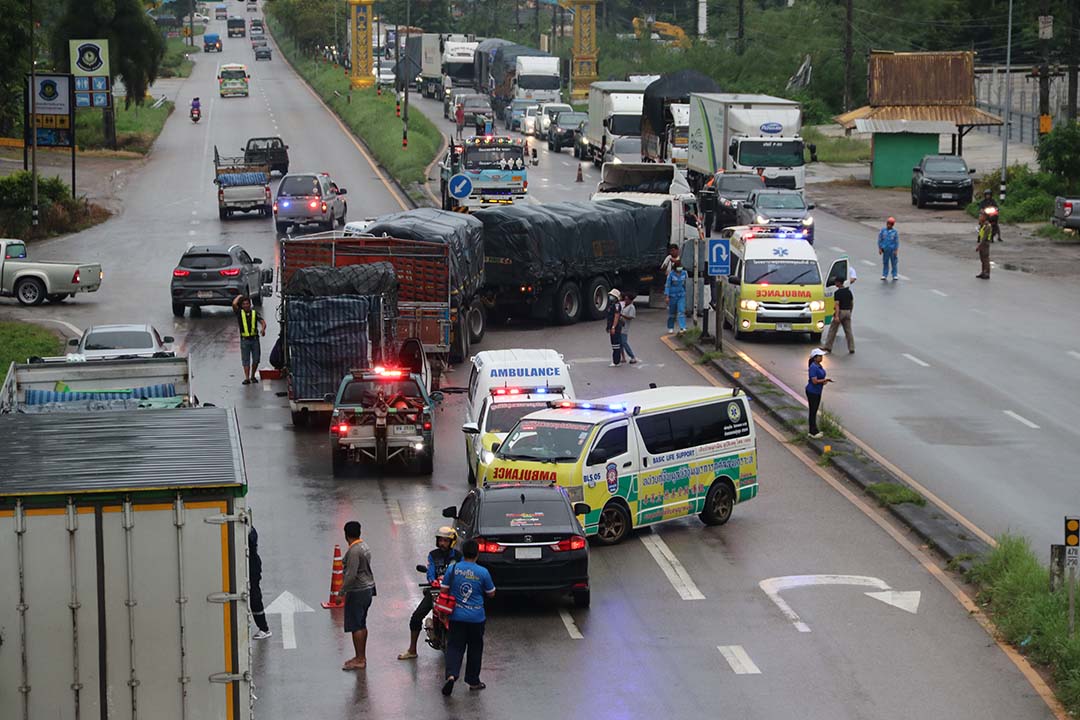 กระบะด่วนผักถูกวางสนุ๊กพุ่งชนท้าย6ล้อ ที่จอดจ่อท้ายรถพ่วงที่กำลังรอกลับรถ