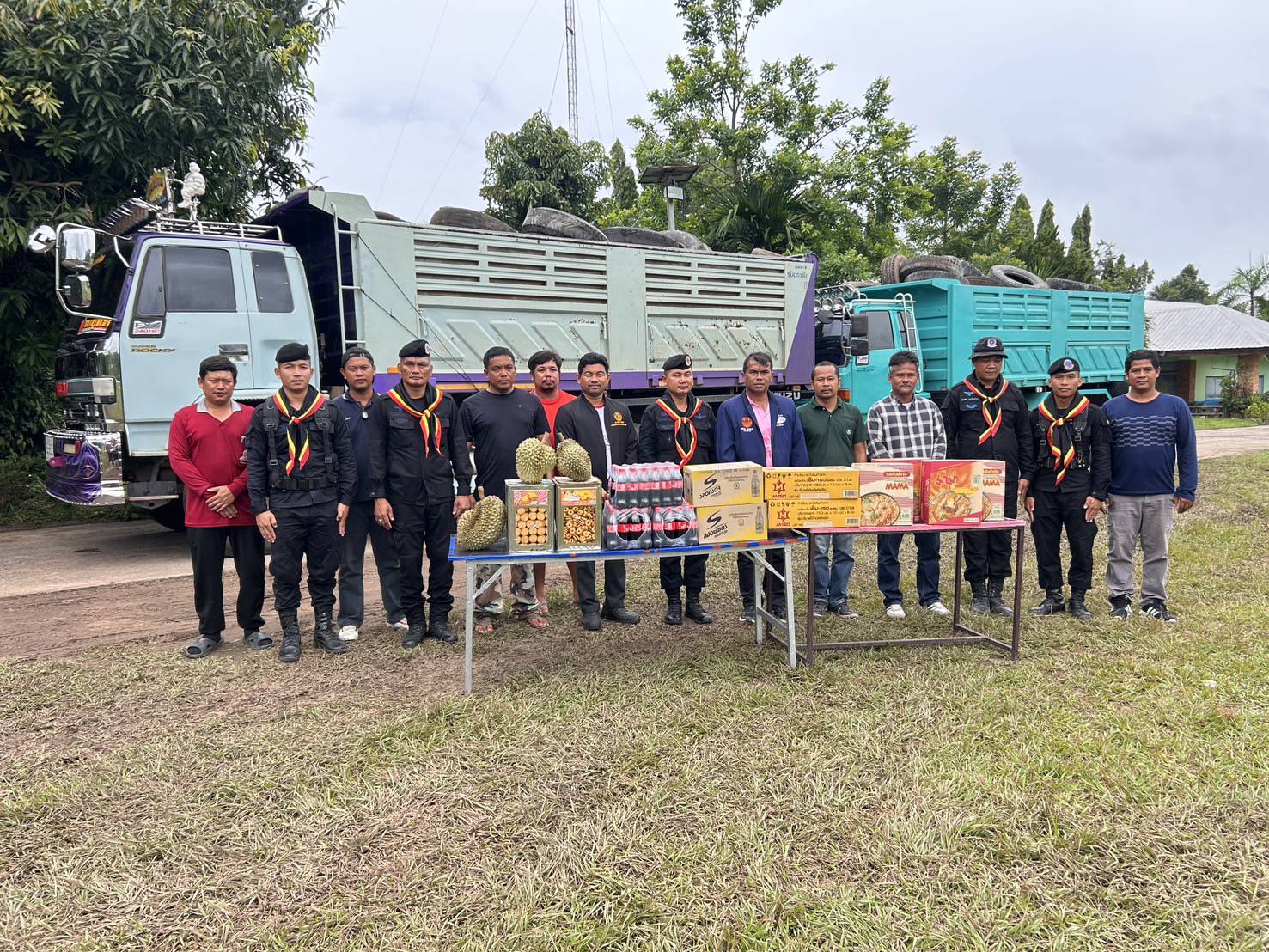 อบจ.โคราชจัดขนยางรถยนต์กว่า500เส้น มอบทหารพรานที่26อำเภอกาบเชิง