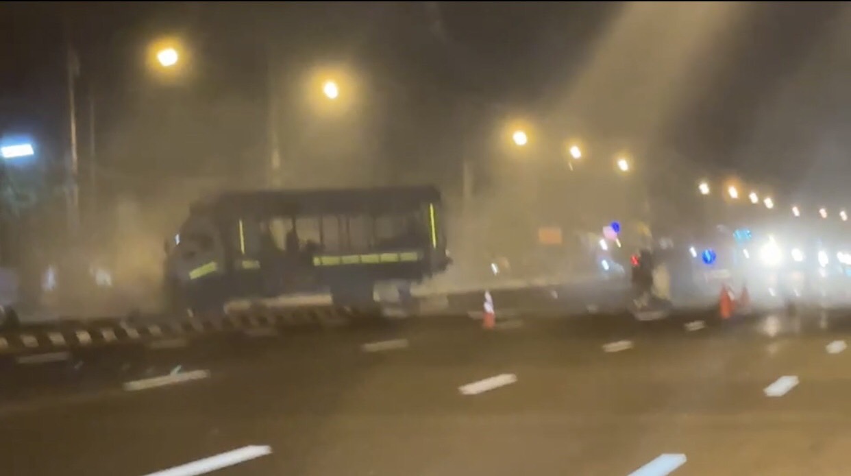 รถพ่วงบรรทุกเม็ดพลาสติกยางระเบิดบน ถนน304ล่าสุดปิดถนนหลังไฟลามหนัก