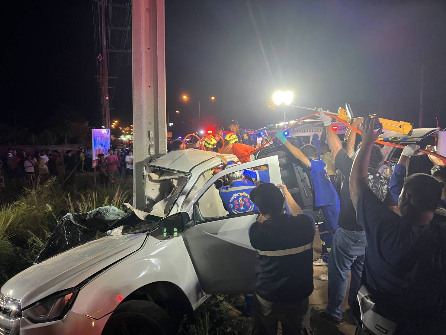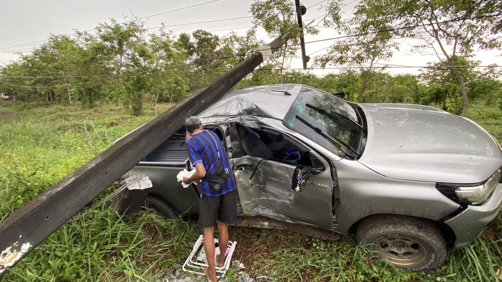 หนุ่มลูกจ้างในกาญจน์ยกทั้งฉลองวันเกิด ขากลับรถยางระเบิดชนเสาไฟดับ3ศพ