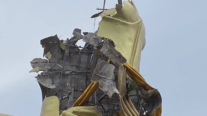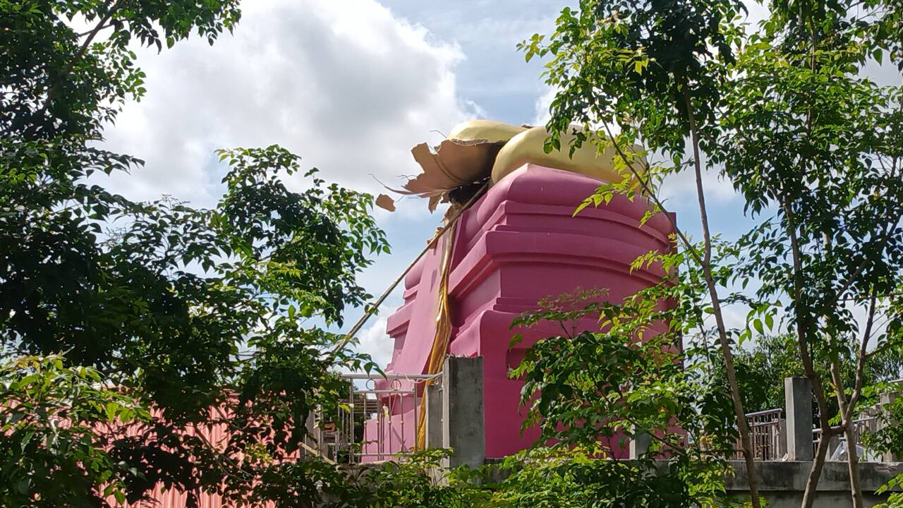 ปราจีนบุรี -ย้ายซากโครงหลังคาหลวงพ่อพุทธโสธรจำลองเสร็จแล้ว คอหวยเล็งป้ายทะเบียนรถเครน83-1811 ที่ยกเศียรและองค์พระที่ตกแต...