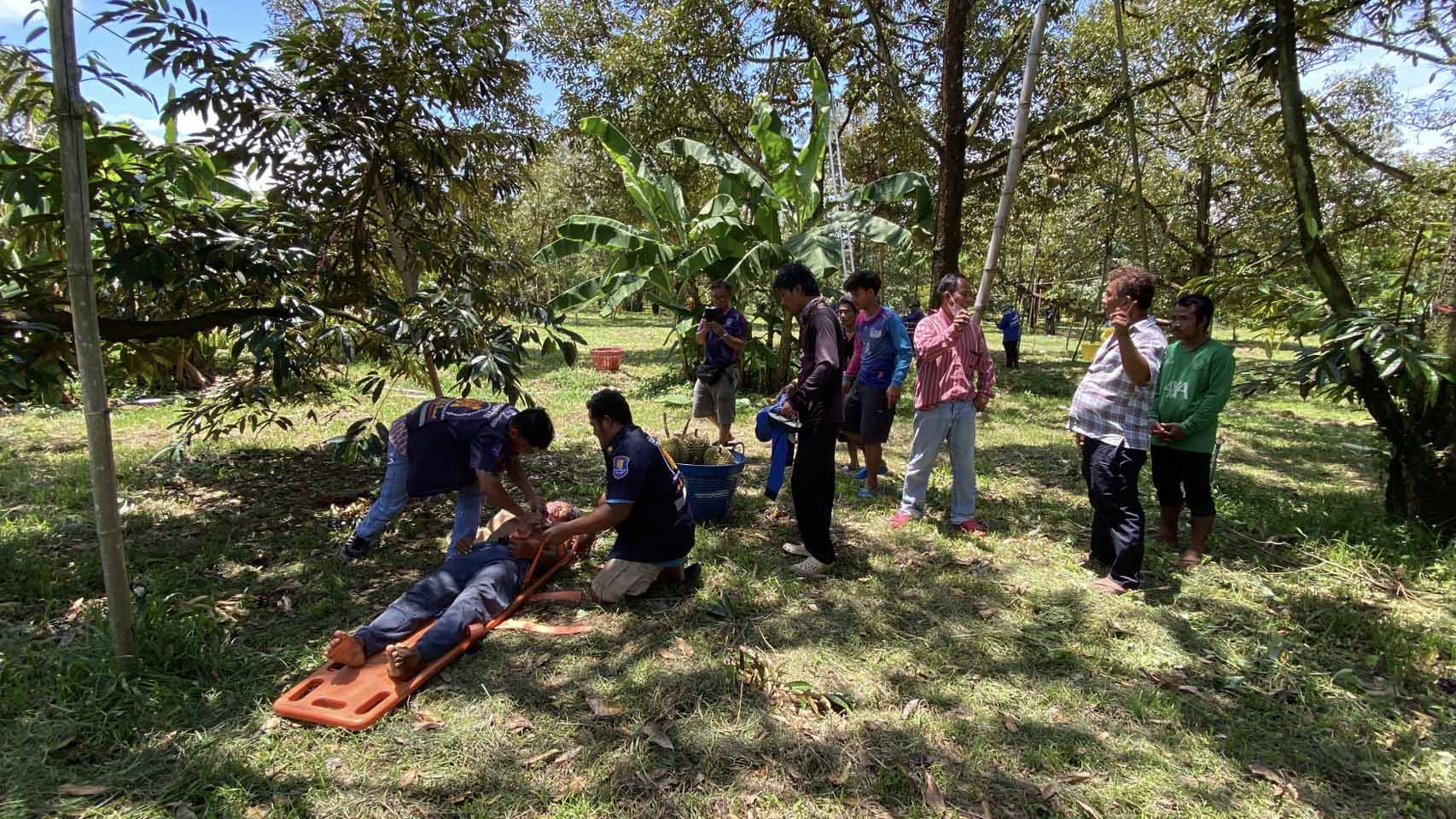 ระทึกขวัญ!คนงานตัดทุเรียนเกิดพลาดท่า โดนสายไฟแรงสูงถูกดูดแต่รอดหวุดหวิด