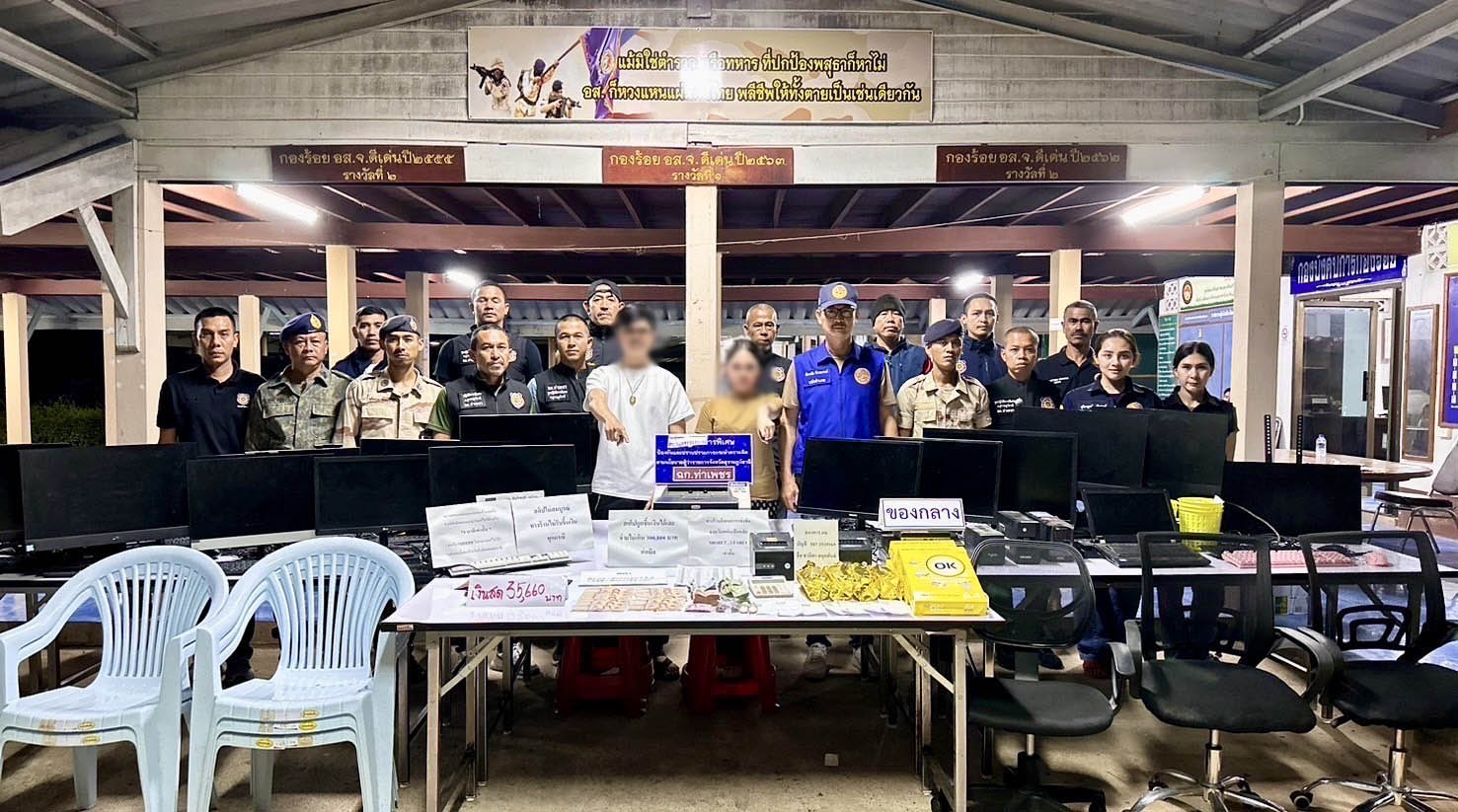 ฉก.ท่าเพชรสุราษฏร์ธานีลุยปรามโต๊ะบอล กลางเมืองรวบผู้ดูแล2คนคอมฯ16เครื่อง