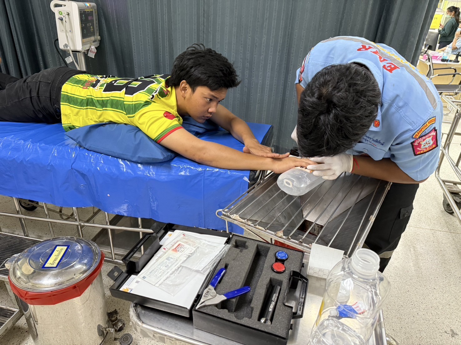 นครปฐม-หนุ่มโรงงานวัย19ร้องให้กู้ภัยช่วยตัดแหวนติดนิ้ว เมื่อวันที่ 16 เมษายน 2568 ที่อำเภอสามพราน เจ้าหน้าที่มูลนิ...