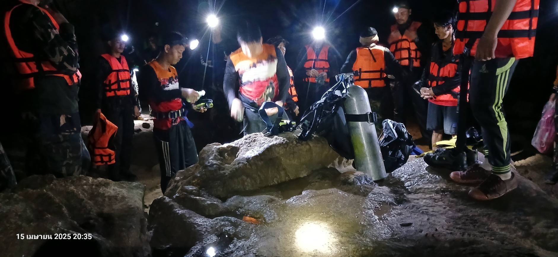 จนท.อุทยานฯจมน้ำดับงมมือถือให้นทท. ขณะพาเข้าชมในถ้ำเสาหินหลังฝนตก