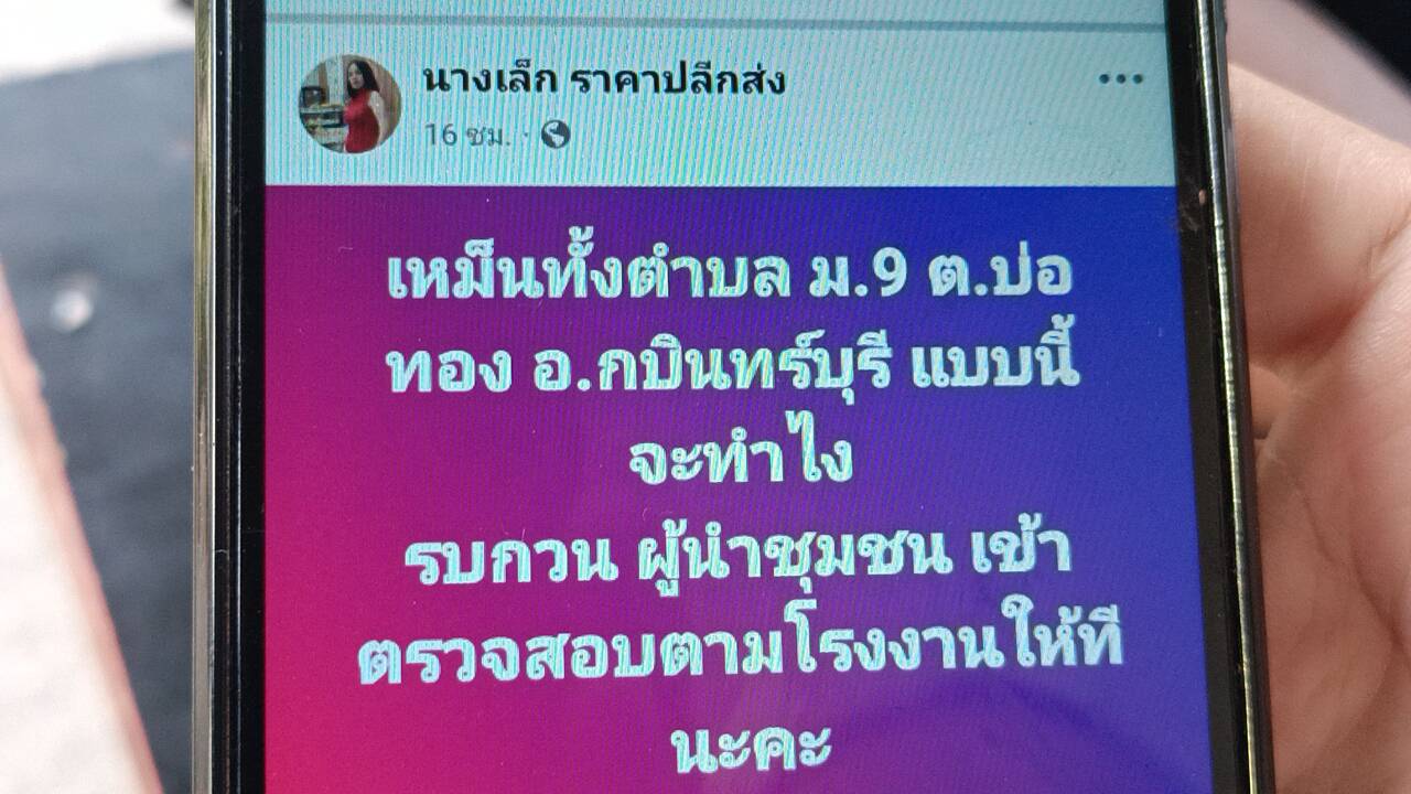 ปราจีนบุรี-ร้องทุกข์!ชาวบ้าน เหม็นสุดทนโรงงานสาวตัดสินใจโพสต์ facebook สำรวจท้ายหมู่บ้านพบว่ามีโรงงานซึ่งเป็นโรงหลอมขยะอ...