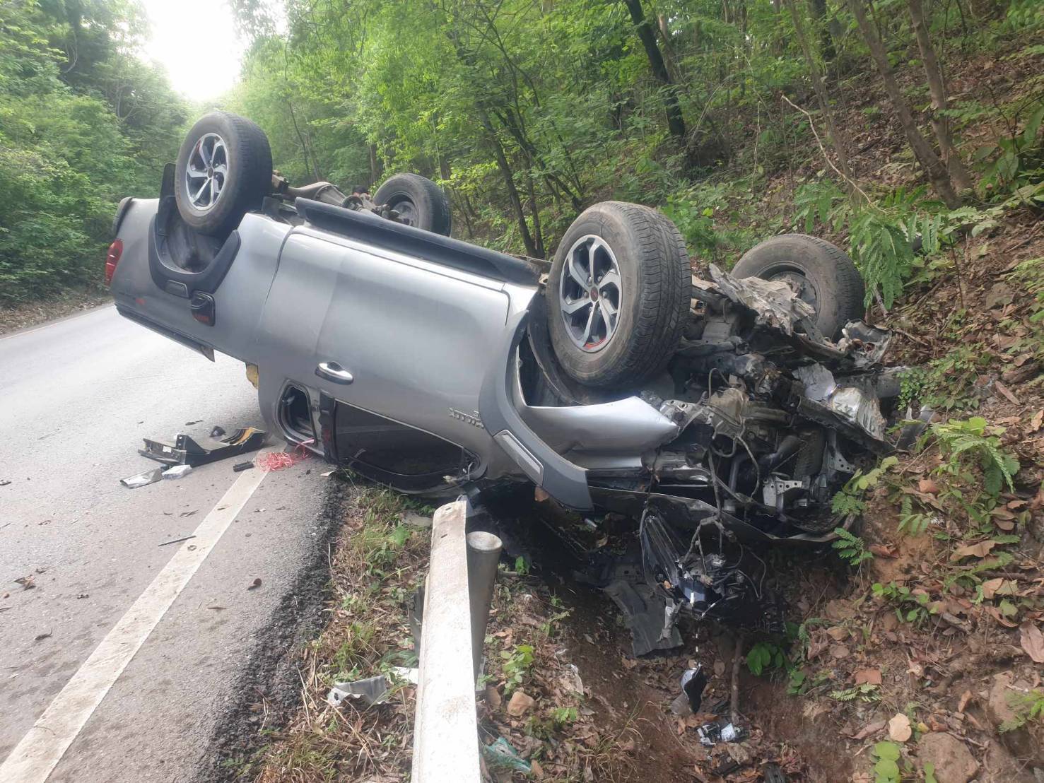 มูลนิธิกู้ภัยกาญจน์ไม่ทอดทิ้งผู้ประสบภัย หลุดโค้งพลิกคว่ำล้อชี้ฟ้า